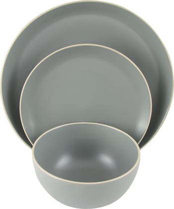 Gibson Home Rockaway 12 Piece Stoneware Dinnerware Set, Main, color, Grey