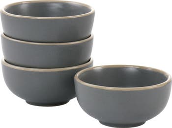 The Rockaway 3.5in fruit bowl set by Gibson comes with four miniature bowls, perfect for small servings or side dishes. These personal mini bowls will give you a fun way to get your fix of fruits or nuts for the day. With the small 3.5in diameter, these bowls can be used to hold small sides, sauces, nuts, chopped fruit, toppings, and more! These mini bowls will come in handy when you want to add a little something extra, but don't need a full bowl size to do it. Completely dishwasher and microwave safe for easy clean up and reheat.