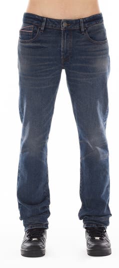 Slim-fitting stretch-denim jeans feature a dimensional dark wash and signature stitching at the back leg for an everyday edgy look.