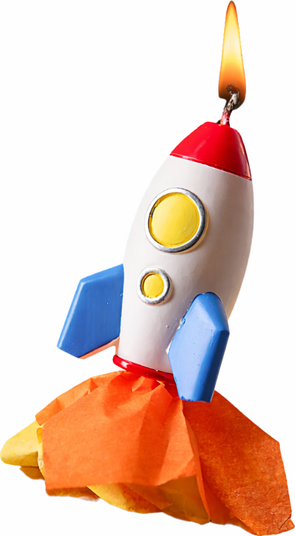 A rocket candle cake topper designed as a space-themed decorative piece, featuring a hand-sculpted rocket shape for playful celebrations, birthdays and gifting. Made from soy wax with clean detailing, this novelty candle doubles as a small display piece while adding a fun, imaginative touch to cakes and party settings. Includes an optional paper flame accessory to create a launch effect, making it a memorable accent for special occasions.