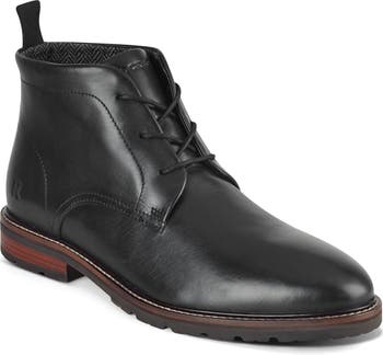A lace-up design and streamlined silhouette distinguish a sophisticated leather boot furnished with truTECH® shock-absorbing cushioning and a flexible sole.