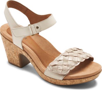 A braided toe strap adds intriguing texture to a vintage-inspired sandal furnished with a well-cushioned footbed atop a cork-textured platform.