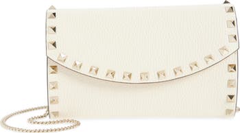 House-signature Rockstuds artfully trace the perimeter of this compact crossbody bag featuring a richly pebbled Italian-leather body suspended from a high-polish chain strap.