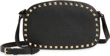 House-signature Rockstuds trace the perimeter of this compact camera bag crafted from richly grained Italian leather and suspended from a curb-chain strap.