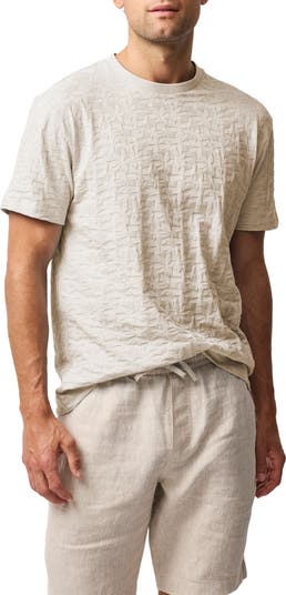 An intriguing leaf jacquard design textures a T-shirt knit from pure Turkish cotton to be a refined and versatile addition to your casual wardrobe.