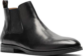 Mixed textures add contemporary intrigue to a sophisticated leather Chelsea boot set on a cushioned insole for comfortable wear.