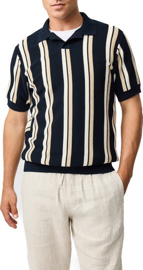 An open johnny collar furthers the relaxed vibes of this polo with vertical stripes that give your laid-back look a bold stamp.