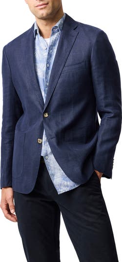 A slubbed blend of linen and wool relaxes a sport coat tailored with traditional detailing and styled to elevate any casual or semiformal look.