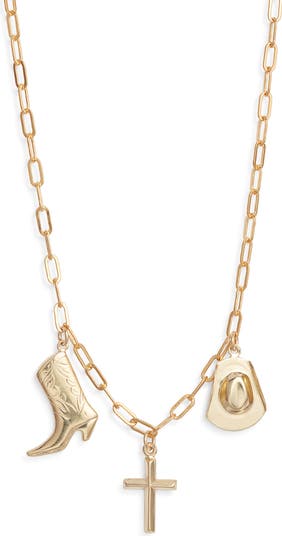 A delicate chain anchors a trio of charms on a lustrous necklace made from 14k-gold fill with a high-shine finish.