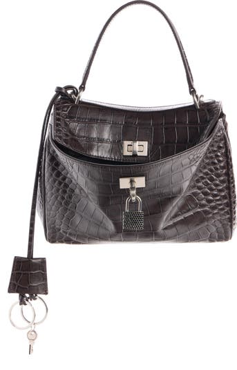 Inspired by the intersection of luxury and fashion, this top-handle bag is named after the Beverly Hills shopping district Rodeo Drive. It's crafted of croc-embossed calfskin leather and features a slouchy silhouette and front compartment left intentionally open for a laissez-faire aesthetic.