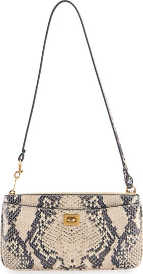 The epitome of understated luxury, this slender shoulder bag crafted of python-embossed calfskin leather features a compact silhouette and signature hardware.