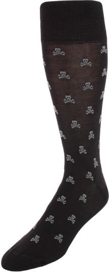 The Rodger mercerized cotton sock is a perfect match for the hidden pirate in all of us. The classic skull and crossbones design repeats all over this mid-calf length sock. With fun colors to choose from, these socks will match your favorite suit, khakis, or pair of jeans. These super comfortable socks are great as a gift for that hard-to-buy gentleman in your life. Socks are the perfect way to subtly show off your personality while still looking professional. Enjoy the comfort of a pair of socks so soft and comfortable that you'll forget you're wearing them.
