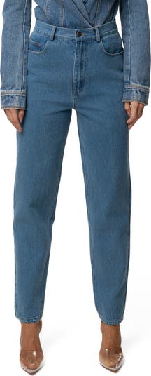 A high waist and tapered leg bring timeless appeal to these wardrobe-staple jeans cut from cotton nonstretch denim.