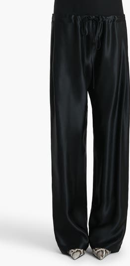 In true Khaite tradition, elegance and ease coalesce in these fluid barrel-leg pants elevated with luminous, lightweight Italian satin and drawstring ties of herringbone grosgrain.