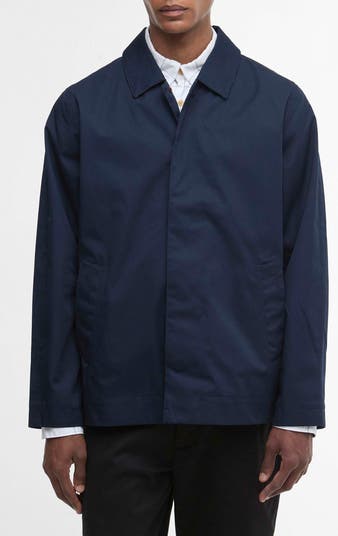 Signature plaid pops from the collar and inner yoke of a waterproof jacket cut in a streamlined silhouette and accented by discreet welt pockets.