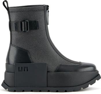 The Roko Bootie II returns with a new canvas upper and textile panels with smooth leather accents for a dynamic textural contrast.. The standout feature is the chunky, geometric platform sole, which adds significant height and a distinctive, architectural edge. Color-blocking details often further enhance the modern aesthetic. The Roko Bootie II is perfect for those seeking a statement-making boot that blends comfort, functionality, and innovative design.