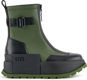 The Roko Bootie II returns with a new canvas upper and textile panels with smooth leather accents for a dynamic textural contrast.. The standout feature is the chunky, geometric platform sole, which adds significant height and a distinctive, architectural edge. Color-blocking details often further enhance the modern aesthetic. The Roko Bootie II is perfect for those seeking a statement-making boot that blends comfort, functionality, and innovative design.