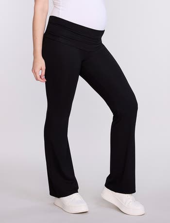 Move through every stage of pregnancy in comfort and style with this Roll-Over Waistband Flare Legging from Motherhood Maternity. Featuring a flexible roll-over waistband and flattering flare leg, these leggings are perfect for lounging, running errands, or low-impact workouts.