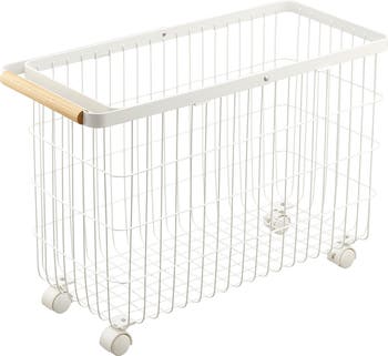 This rolling laundry basket holds a large amount of laundry and features sturdy caster wheels, making it easy to roll your laundry to and from the wash room.