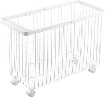 This rolling laundry basket holds a large amount of laundry and features sturdy caster wheels, making it easy to roll your laundry to and from the wash room.