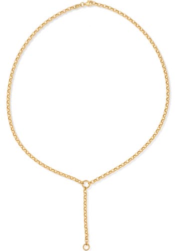 A pair of oversized links flank the Y-chain of this 14-karat-gold necklace to make perfect spots for charm customization.