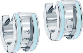 Vibrant enamel stripes add a splash of color to these high-shine huggies with the brand's logo engraved into the center, bringing heritage charm to everyday looks.