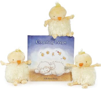 Welcome your newest chick into the world with this sweet gift set that includes a charming board book and three fuzzy, roly-poly hatchlings that fit easily in small hands. In 'Counting Peeps,' a little lamb learns that leaping and peeping lead to restful sleeping.