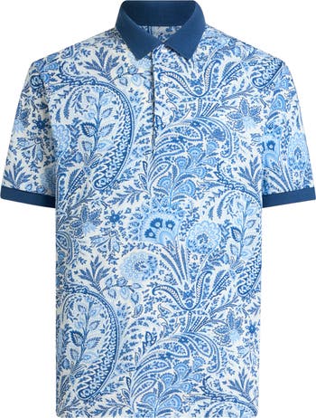 The label showcases its mastery of pattern as airy cotton piqué becomes a canvas for swirling paisley to turn this polo into a vibrant study of movement and color. Solid ribbing at the collar and cuffs provide clean contrast that grounds the exuberance.