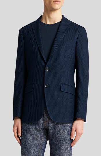 An richly textured cotton knit relaxes the formality of a classic navy blazer designed with softly constructed shoulders and a smartly tailored waist. Fully lined and finished with traditional detailing, it brings a distinctive finish to any elevated look.