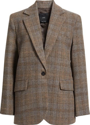 Allover plaid enhances the polish of this longline blazer made in a relaxed one-button silhouette.