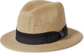 A striped grosgrain band adds definition to the clean, minimalist look of this fedora built from intricately woven straw.
