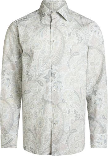 Channel the label’s command of cut and pattern with a button-up in stretch-enhanced cotton, its saturated print washing the surface with gallery-level depth. A sharp point collar refines the line and a gently curved hem stays sleek when tucked.