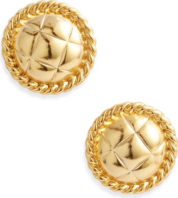 A duality of textures distinguishes these handcrafted button earrings plated in warm 24-karat gold.