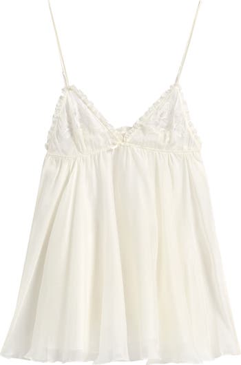 Fall for the flouncy movement of this slinky-strapped babydoll slip cut from luxurious silk that feels soft against your skin.