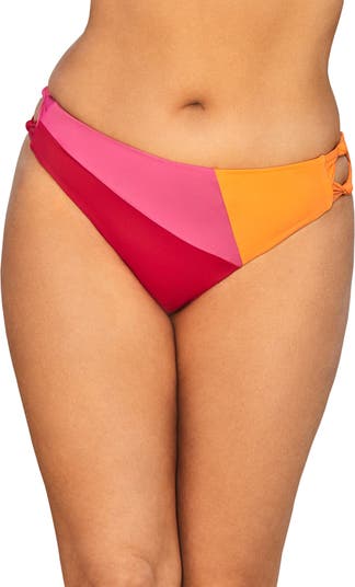 Just like its matching bikini top, this chic bikini bottom checks off all the boxes. The design is vibrant and chic, with a playful pop of color blocking that slims your shape to flattering proportions. Fully lined with side knot tie detail, it offers full coverage. Wear with the Romancer Color Block Halter Triangle Bikini Top or mix and match with any of our swim tops to create your own look.
