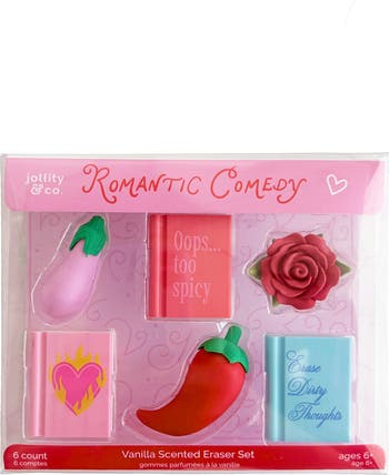 Set the scene for sweet moments with our RomCom Eraser Set! Featuring playful designs like an eggplant, books, a rose, and a pepper, this charming eraser set is perfect for movie nights, book club fun, classroom use, or gifting. A whimsical way to indulge your love of rom-coms while adding a little personality to your desk or pencil case.