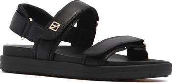 Adjustable hook-and-loop straps bring easy comfort to a breezy leather sandal designed with a cushy foootbed and podiatrist-designed dual-density molded sole.