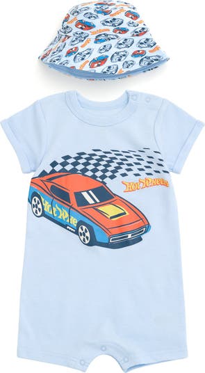 Get your little one ready for a day of fun in the sun with this adorable Hot Wheels Romper and Bucket Sun Hat Outfit Set! Made for newborns to toddlers, this set includes a comfortable romper and a stylish bucket hat featuring the iconic Hot Wheels logo and artwork of classic race cars. The romper is made from soft and breathable fabric, perfect for keeping your little one cool and comfortable. The bucket hat provides shade and protection from the suns rays, making it perfect for outdoor adventures. This set is a must-have for any Hot Wheels fan and is sure to turn heads wherever your little one goes. HOT WHEELS (TM) and associated trademarks and trade dress are owned by, and used under license from, Mattel. (c) 2025 Mattel.