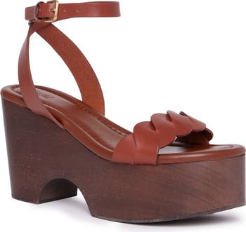 Complete your look with the boho-chic style of this ankle-strap sandal lifted by a wood-grain platform sole.
