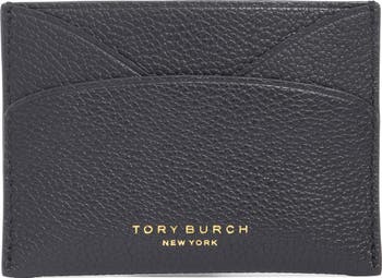 Asymmetric pockets dial up the modern sophistication of a rich leather card case stamped with a gleaming logo.