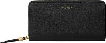 - Dual interior compartments with center zip-pocket divider; currency pockets; eight card slots