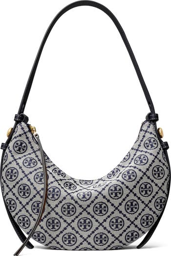 Signature logo jacquard creates rich texture on this half-moon shoulder bag designed with an optional crossbody strap for versatile carry.