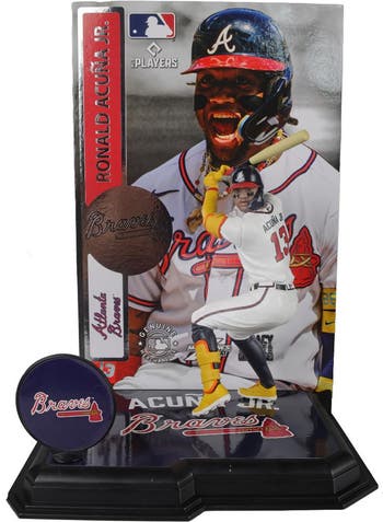Ronald Acuña Jr. (Atlanta Braves) 7” Posed Figure. After signing with the Braves as an international free agent in 2014, Acuña made his MLB debut in 2018 making him the youngest player in Major League Baseball at that time. That year he won the National League (NL) Rookie of the Year Award. Since 2018, Acuña has made four MLB All-Star team appearances, won three Silver Slugger Awards, and twice led the league in stolen bases. During the 2023 season, he became the fifth MLB member of the 40–40 club, set a modern-era franchise record in stolen bases, and became the first MLB player to accomplish a 40–70 season. Acuña won the NL Most Valuable Player award in 2023.