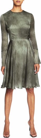 RONI Long Sleeve Knee Length Ombre Polka Dot Flared Dress