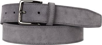 Richly textured Italian suede distinguishes this versatile belt secured with a logo-embossed buckle.