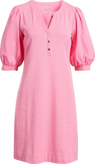 Add a pop of pink with a darling dress designed with puff sleeves and mostly made from a supersoft blend of cotton and sustainable Tencel™ modal.