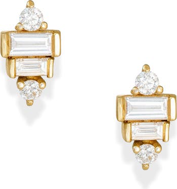 Baguette and round cubic zirconia shape the art deco–inspired silhouette of these twinkling stud earrings.