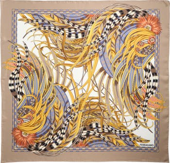 Bring kaleidoscopic color to your look with this vibrant Italian-silk twill scarf featuring Ferragamo’s rooster iconography reimagined with lavish plumage and exquisite detail.