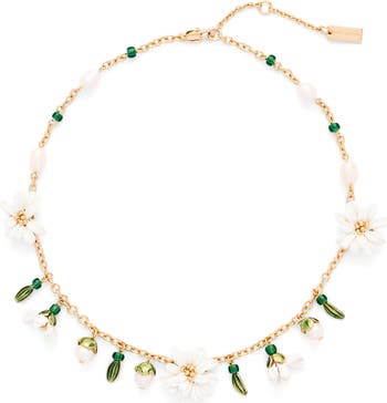 This cheerful charm necklace celebrates Marc Jacobs' favorite flower in full, playful bloom. Enameled faux-pearl pendants capture four stages of petal life along a goldtone link chain, creating a joy-forward statement piece bursting with personality.