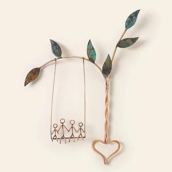 Catherine Murphy's Rooted in Love Swing Sculpture is a handmade copper piece that captures the essence of love and togetherness. With a sweet swing that moves, it serves as a heartfelt reminder of life's simple pleasures.
